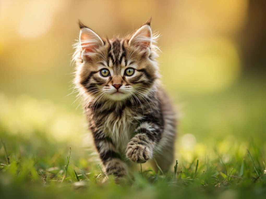 Kociak chodzi z rozłożonymi tylnymi łapkami, jest zdeterminowany, by pewnego dnia móc skakać