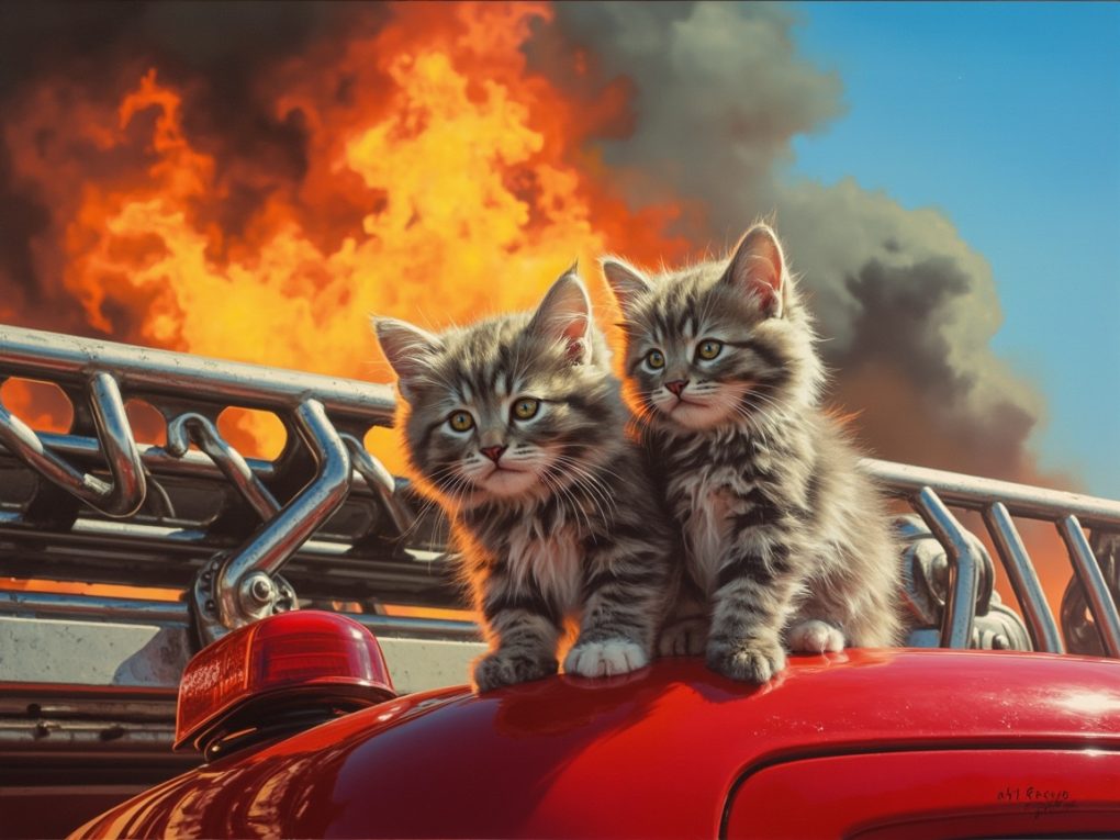 Kociak Smokey wskoczył na wóz strażacki podczas dużego pożaru i został odkryty na stacji następnego dnia.