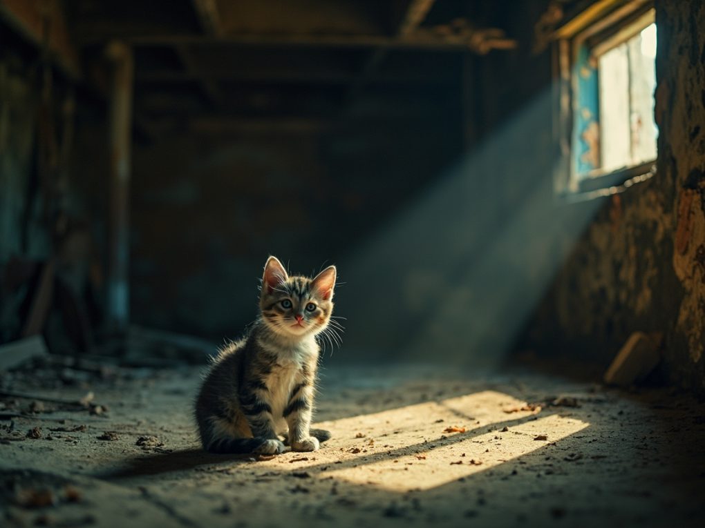 Kociak znaleziony w piwnicy budynku przechodzi całkowitą przemianę i jest szczęśliwy
