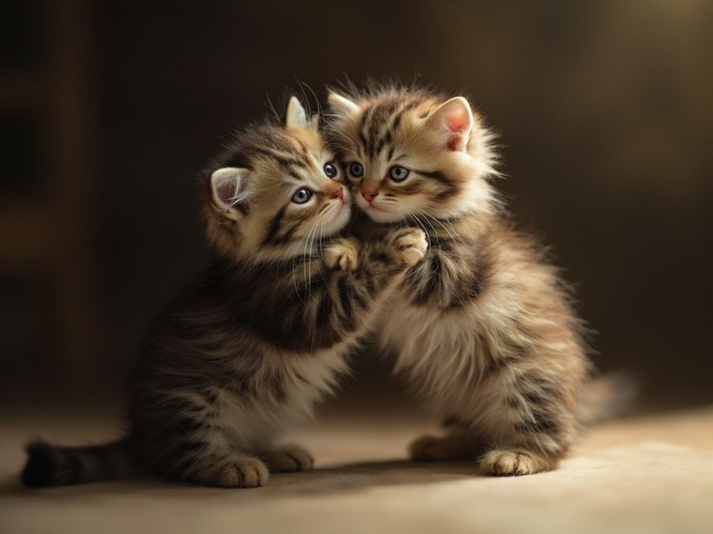 Kociaki od początku obsypywały się wzajemnie przytulankami. Jeśli jedno z nich zaczęło miauczeć, drugie odbiło się echem i dołączyło do duetu.