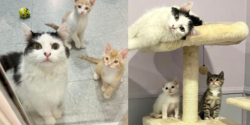 Jej własne kocięta natychmiast zaakceptowały mniejsze maluchyExploitsValleySPCA