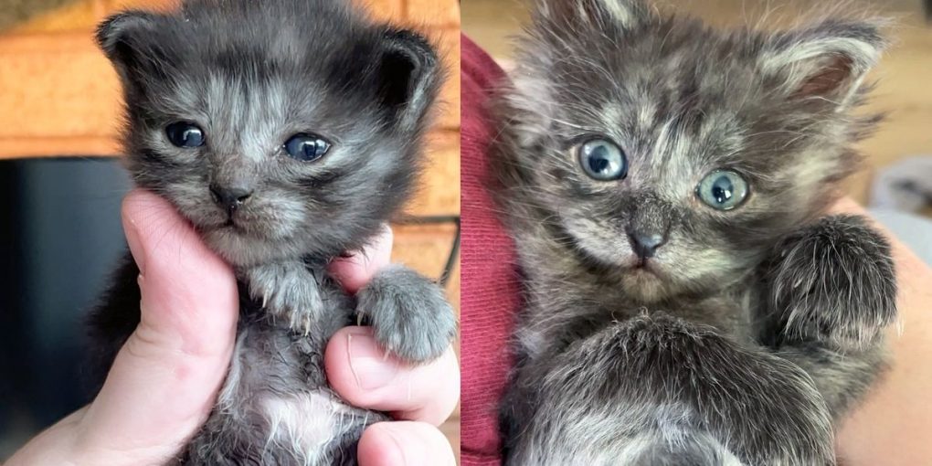 Within two days in foster care, the smaller kitten perked up and began to gain weight.